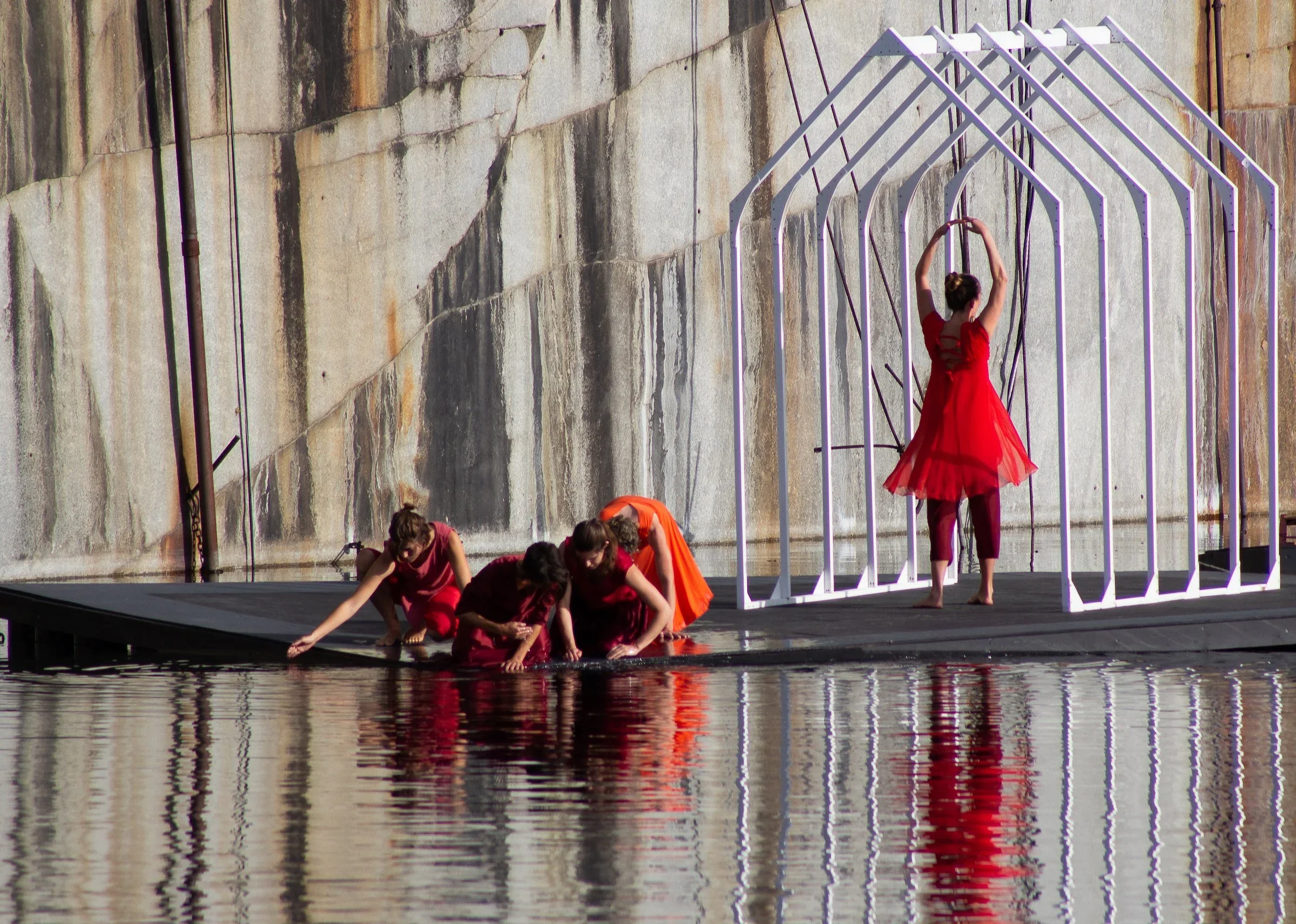 Off-site rehearsals for the Quarry Project are complete. Now we look to August to put all components together in the quarry. Until now, we have been working on specific scenes and imagining what they would look like in proximity.
