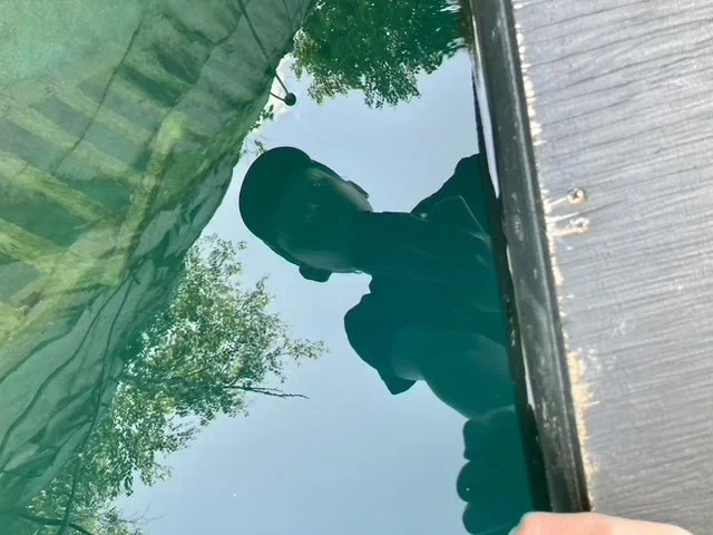 Over the course of seven weeks from June 17 – July 31, I spend a few hours nearly every day in the quarry, floating on the water, usually with just one person - ensemble members and a few supporters. It was a lovely, lovely time, quietly, slowly circumnavigating the perimeter, talking, listening, grateful for this unique pause in our lives.
