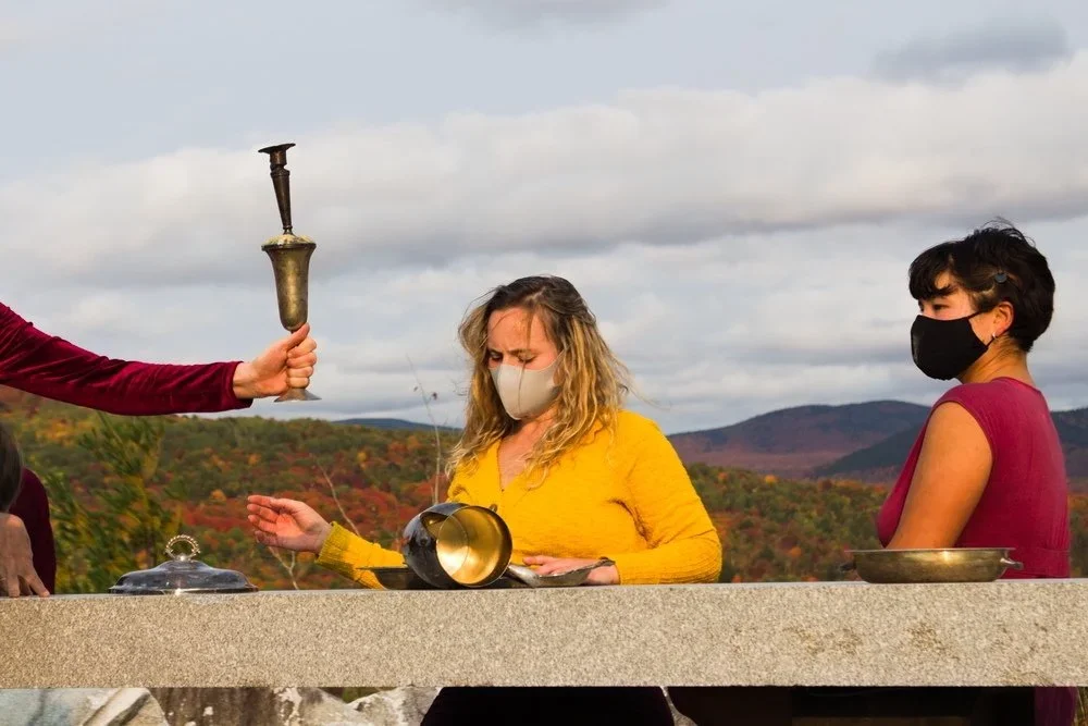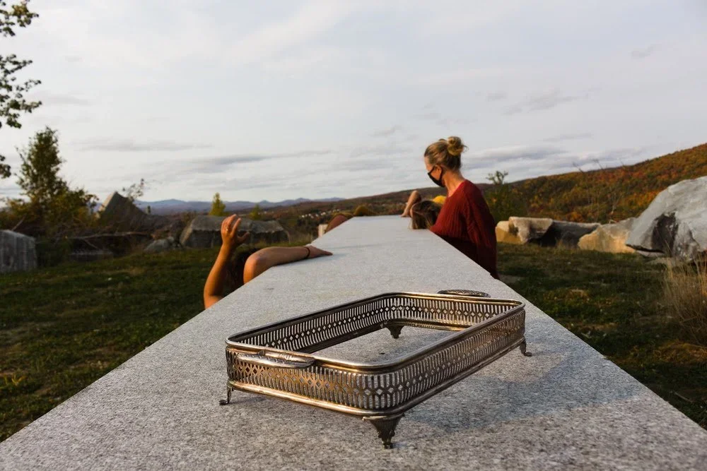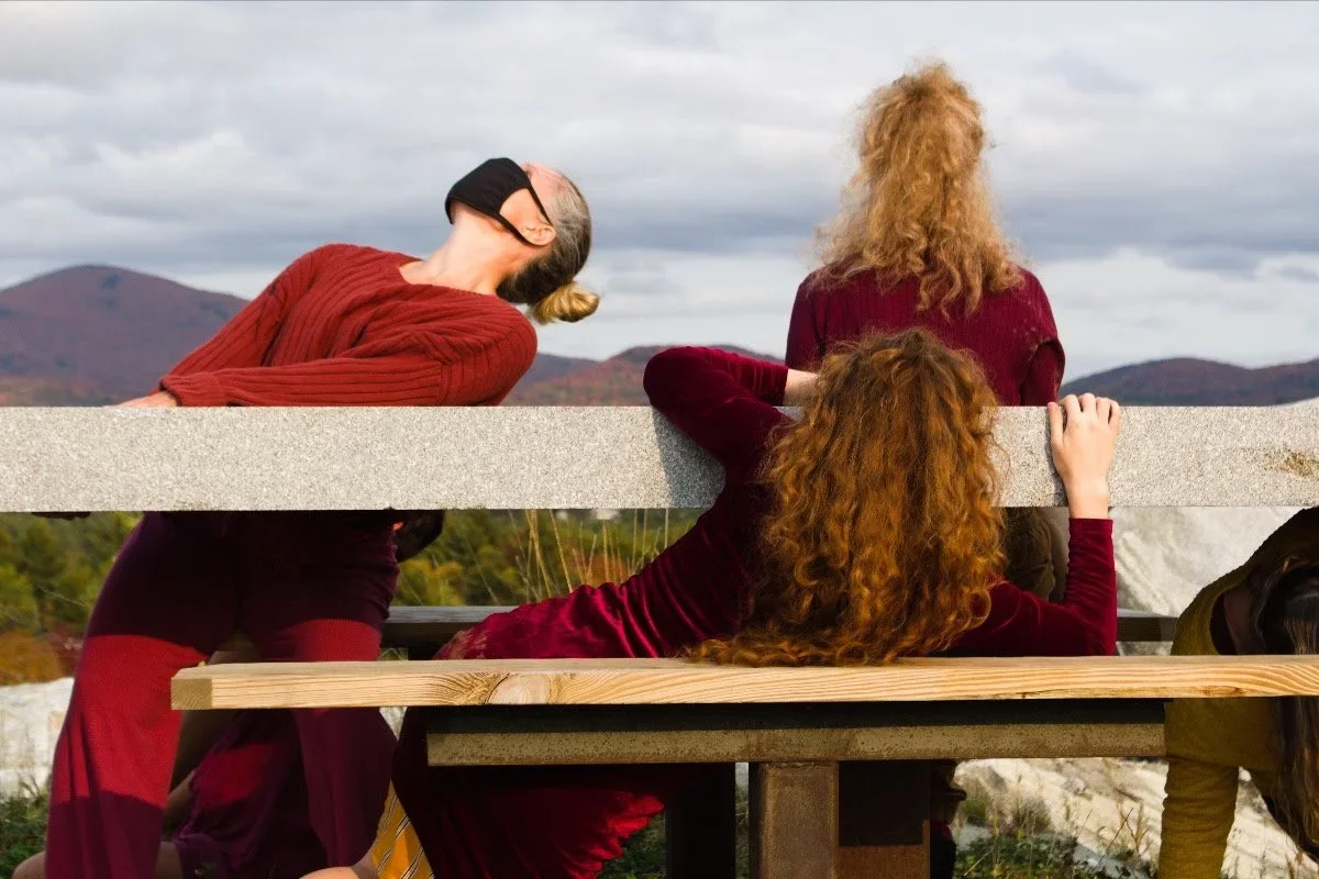 At the end of September, the TABLE dancers met near the quarry at Jay Southgate’s very long outdoor granite table to improvise, six feet apart, with the gestures from the Table dance.
