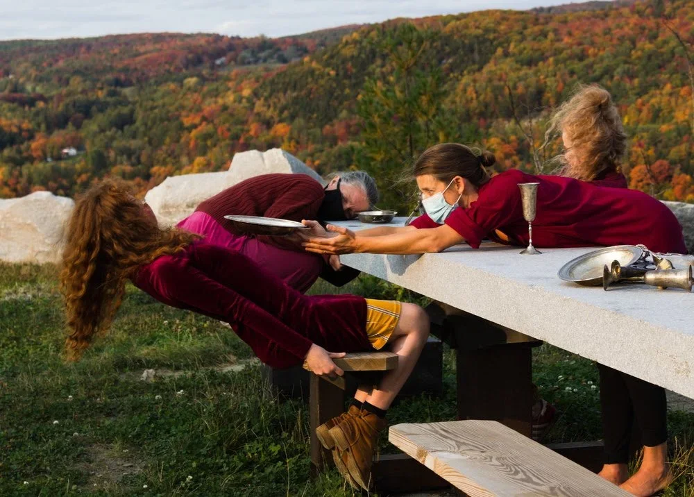 The image above was taken at Jay Southgate’s large granite table in 2020 when the TABLE dancers improvised together, enjoying the chance to be moving together again.