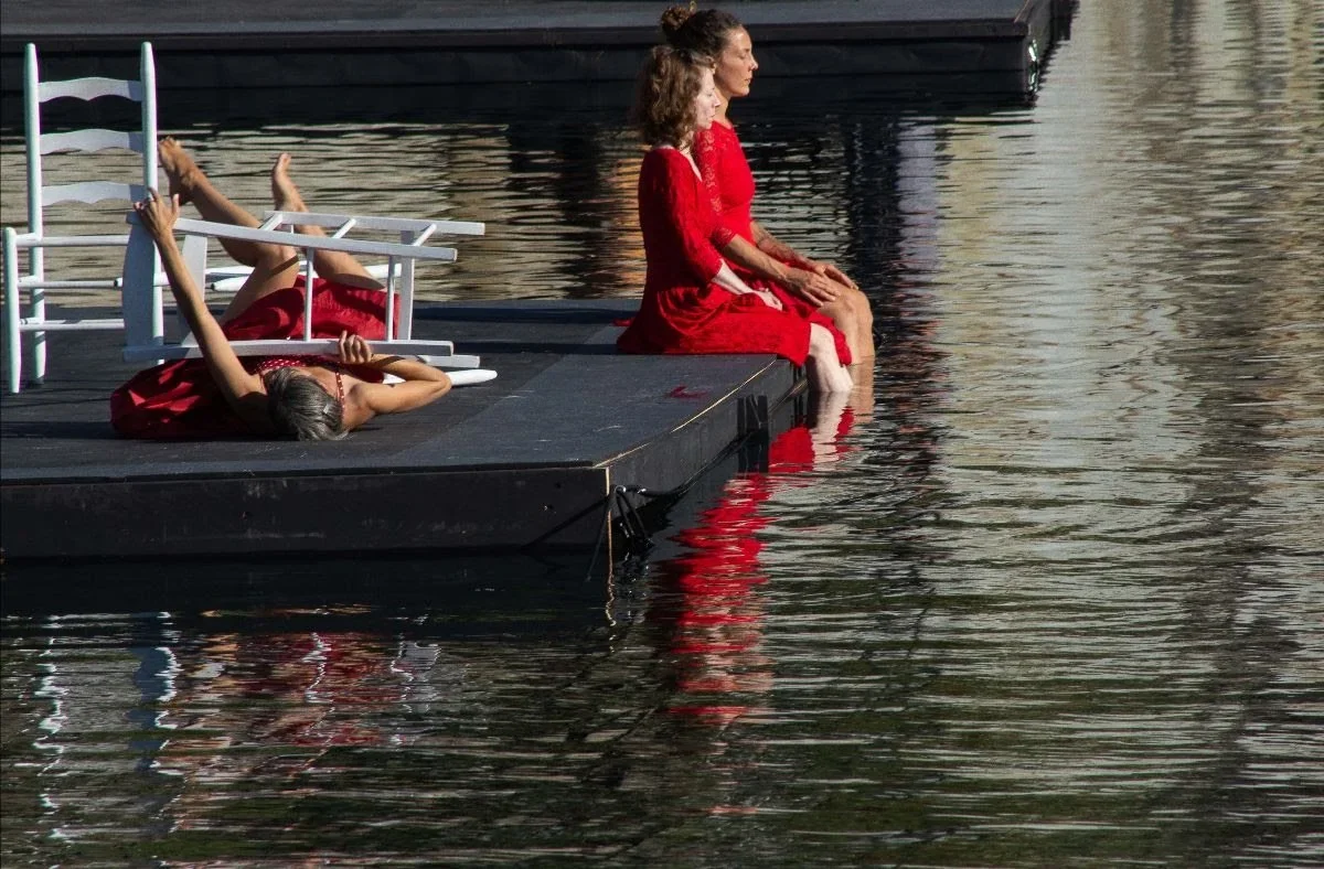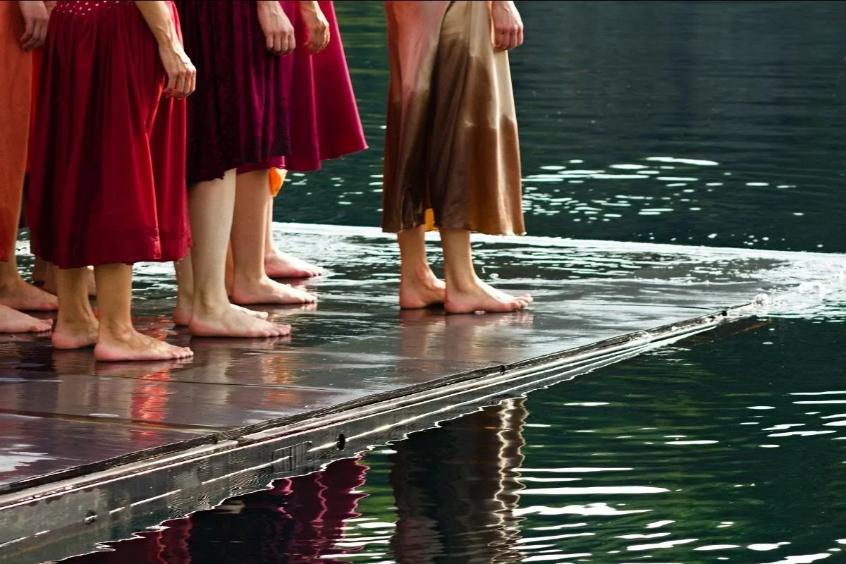 This photograph of the House women stepping across the water onto their stage is a moment in the performance that always touched me, perhaps because they were the first to separate from the group, or perhaps because of that gap of water that encapsulated the unknown, the element of chance that was always present, where anything could happen.