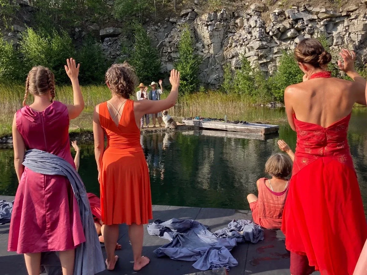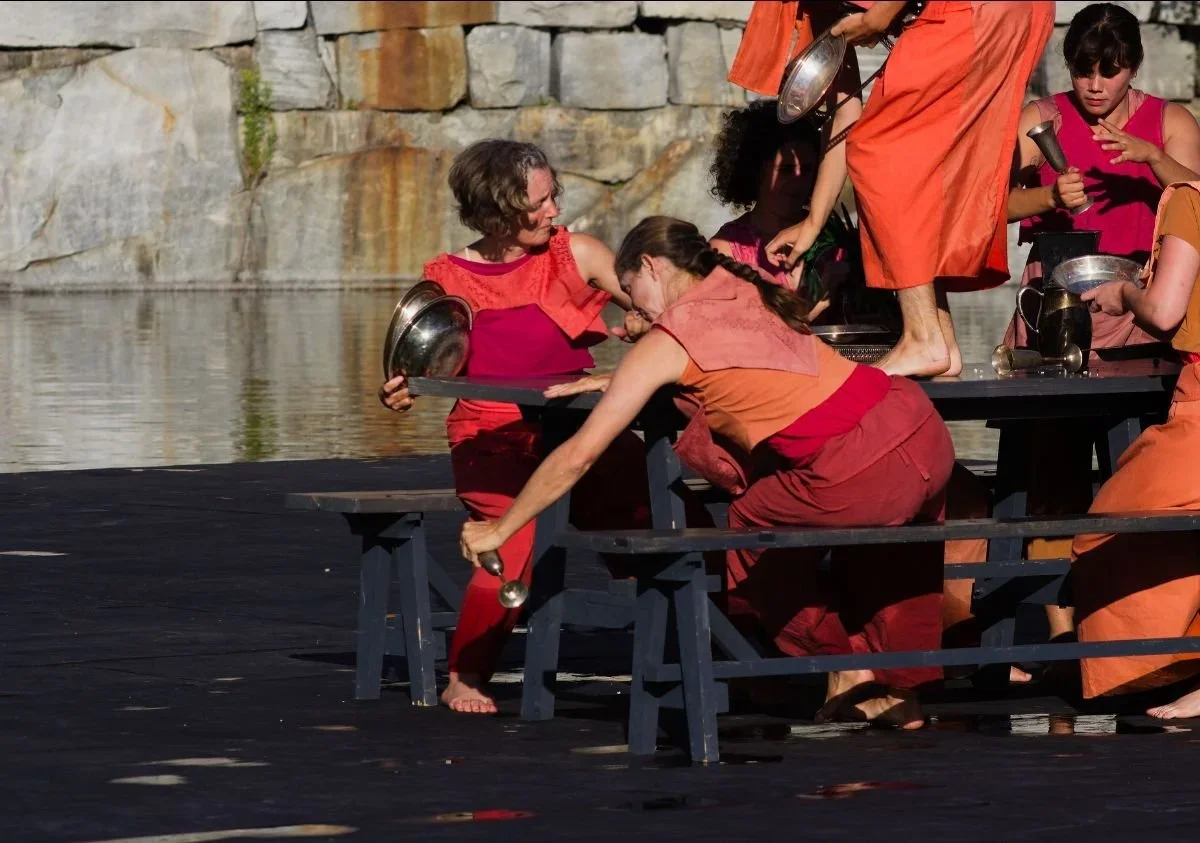 We have been in the quarry over the past 6 weeks creating the theatre in preparation for our three dress rehearsals, which we just completed with full houses. I watched from a different location each evening, delighted at how the piece has shaped up and how skillful the ensemble and crew are at problem-solving on the fly.